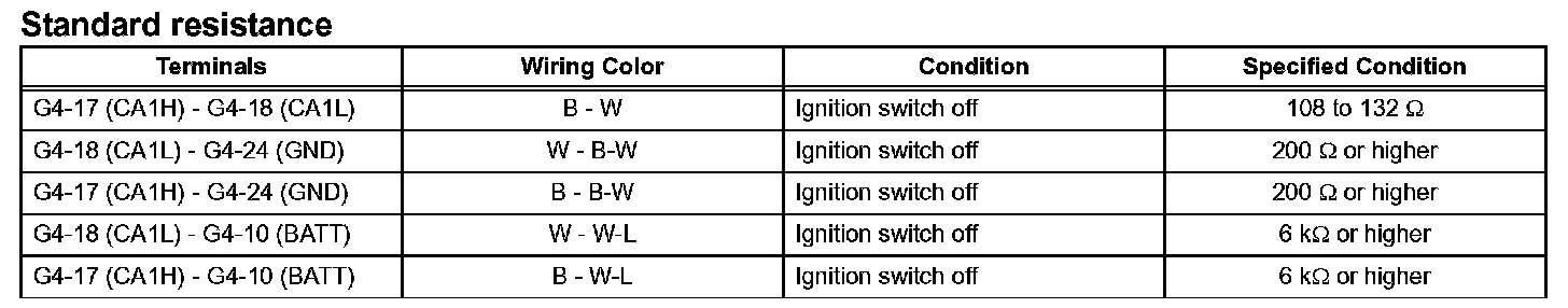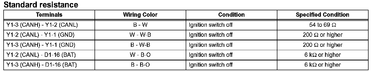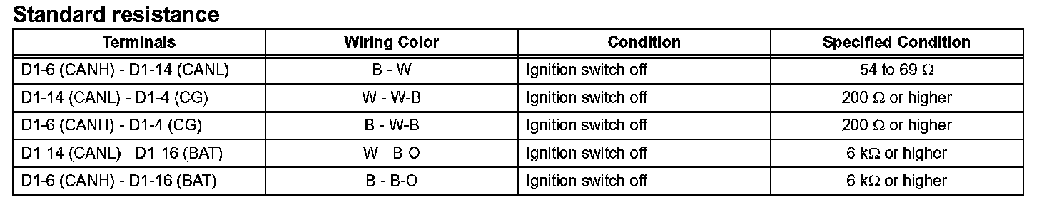 a. Measure the resistance according to the value(s) in the table.