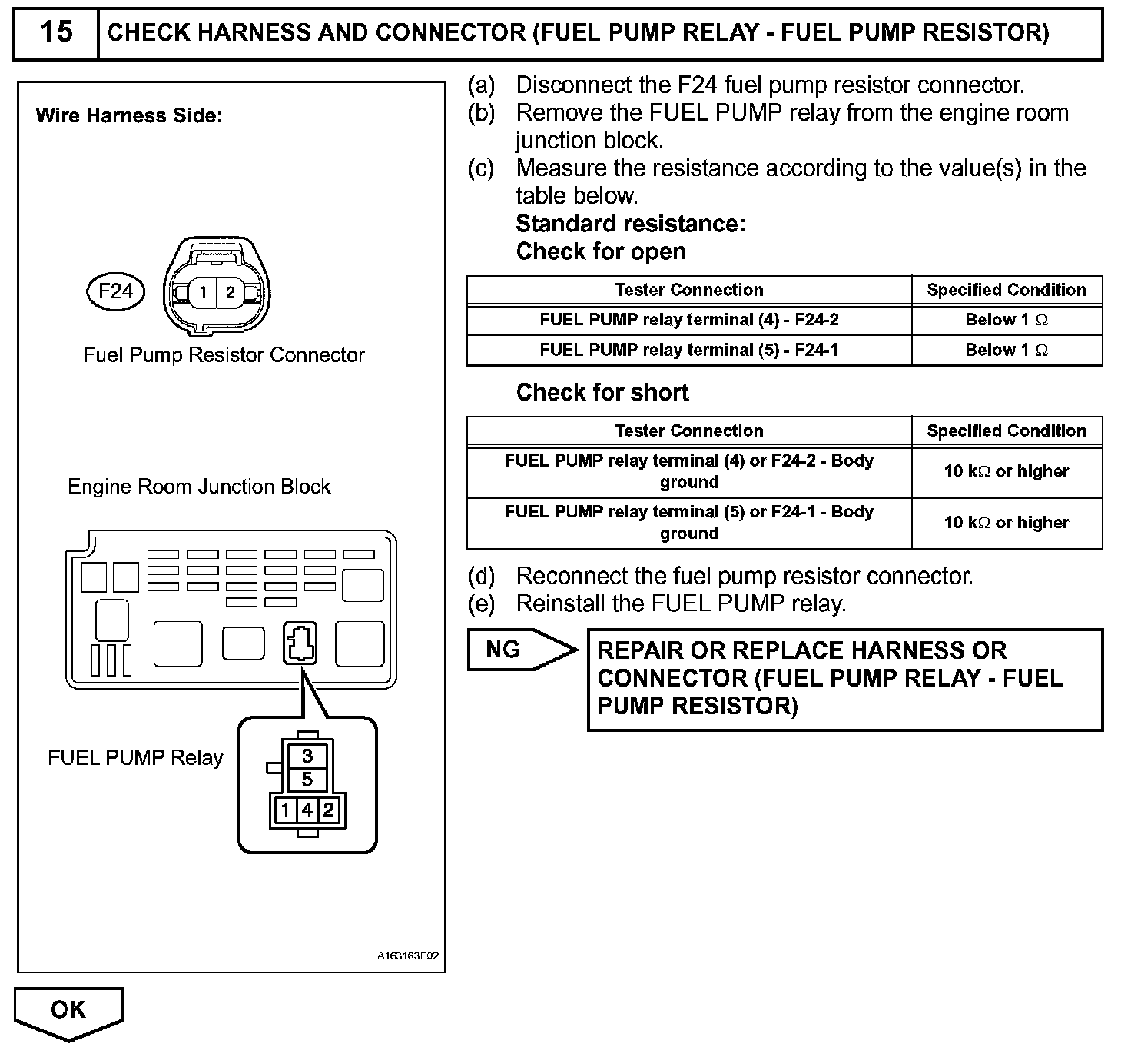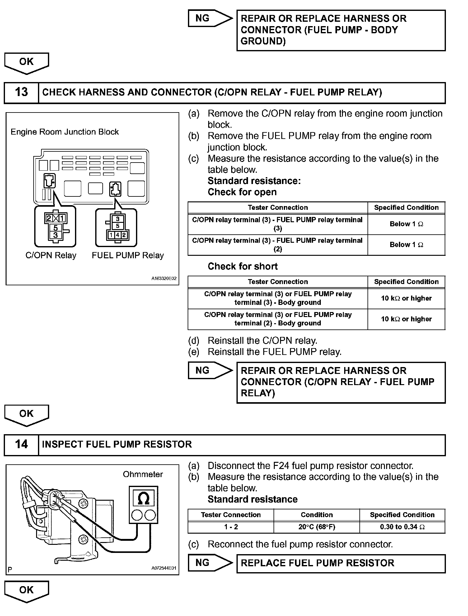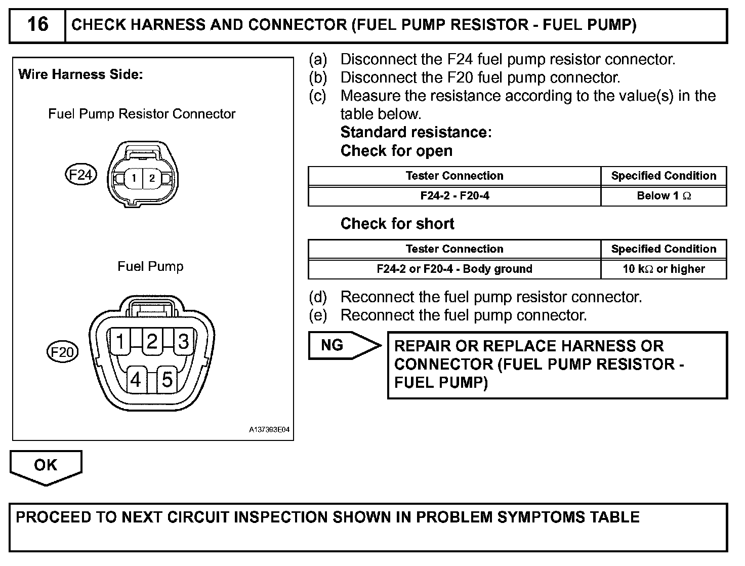 The FUEL PUMP relay is turned ON while the engine is idling or operating at low load. This causes current to flow through the fuel pump resistor to the fuel pump. The fuel pump then operates at low speed.