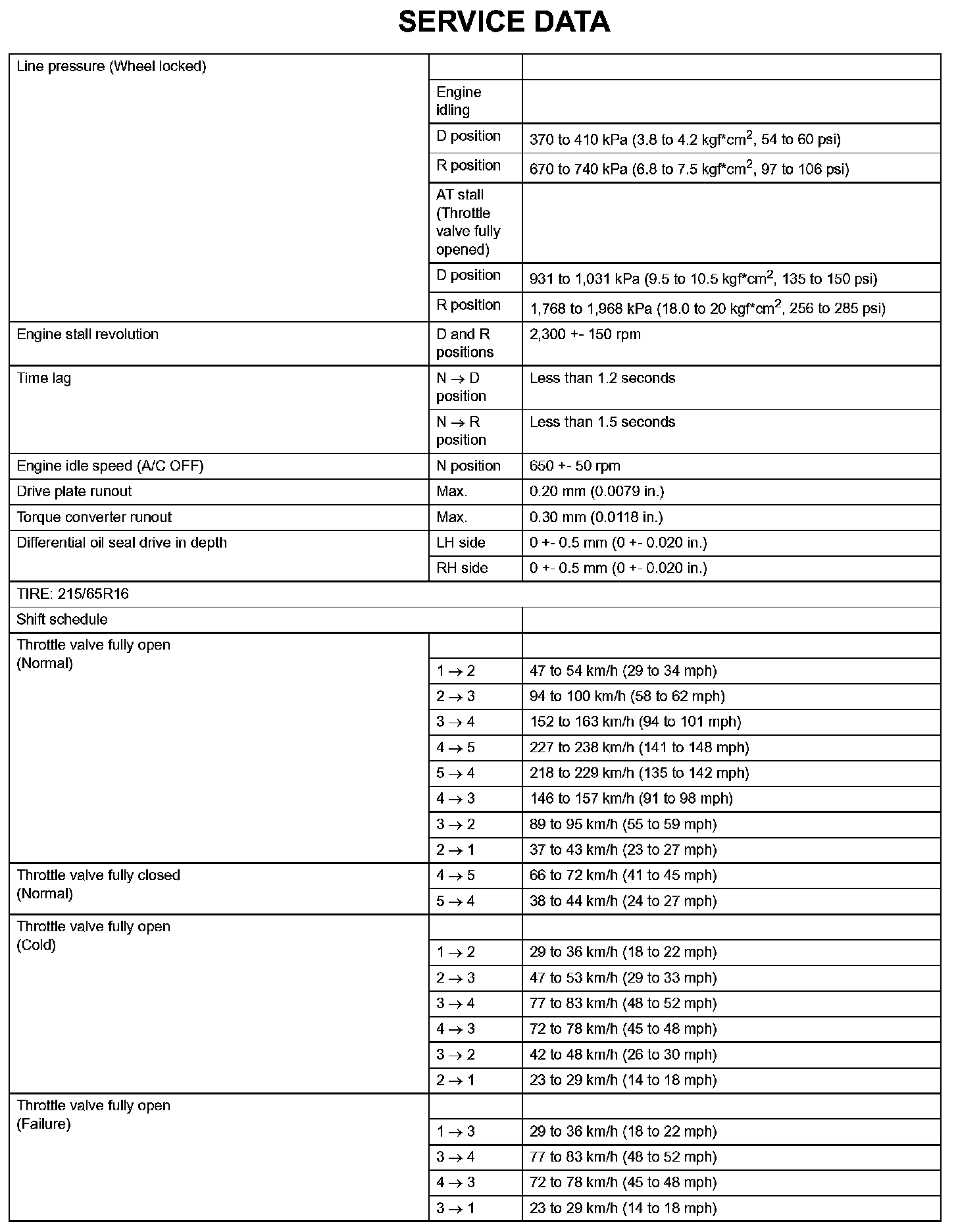 Automatic Transaxle - Service Data (Part 1):