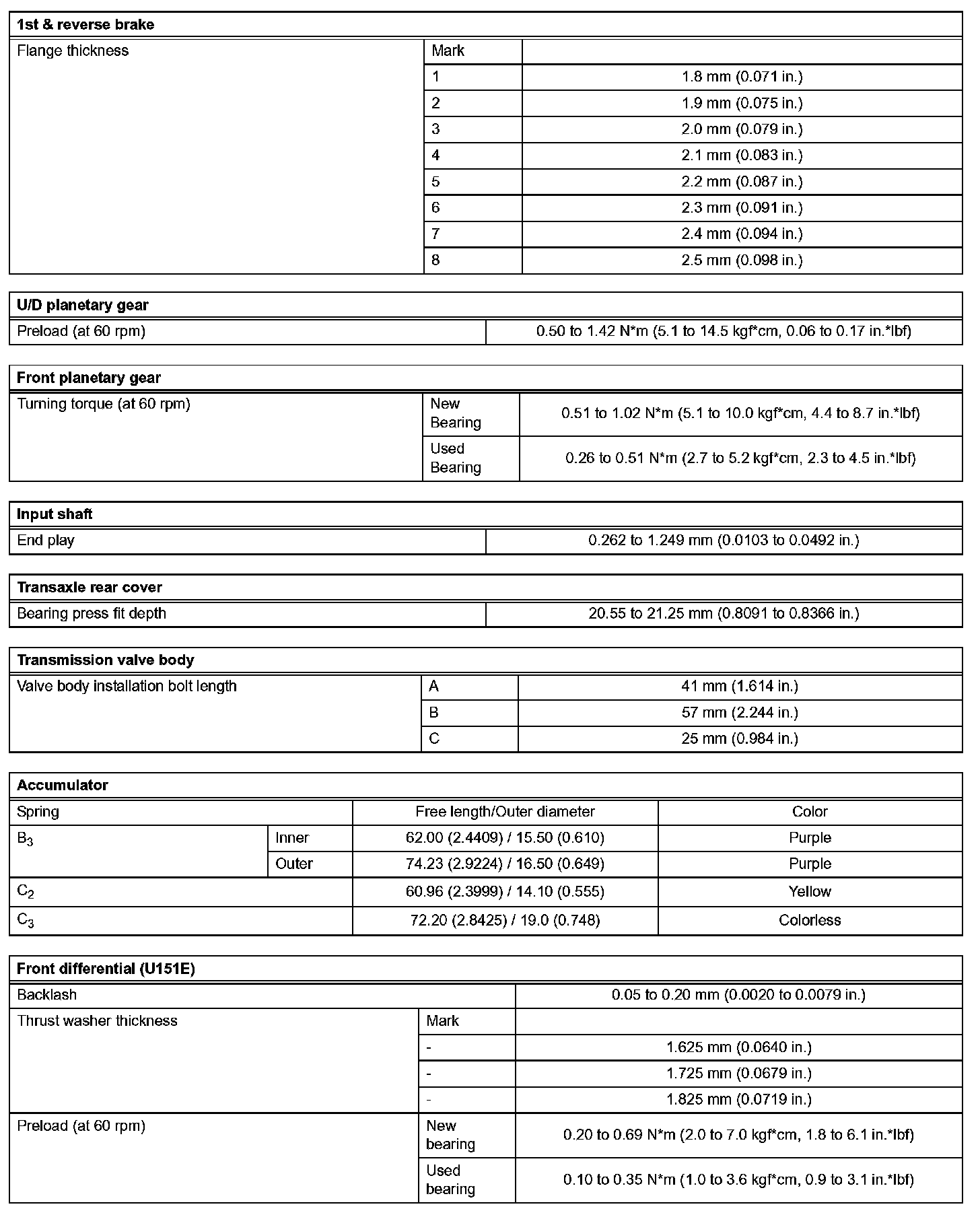 Automatic Transaxle - Service Data (Part 2):