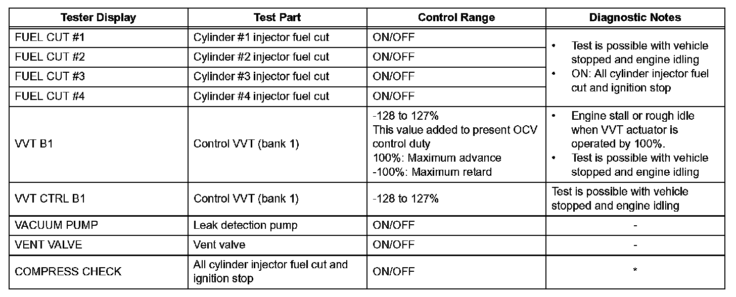 e. Perform the ACTIVE TEST by referring to the table.