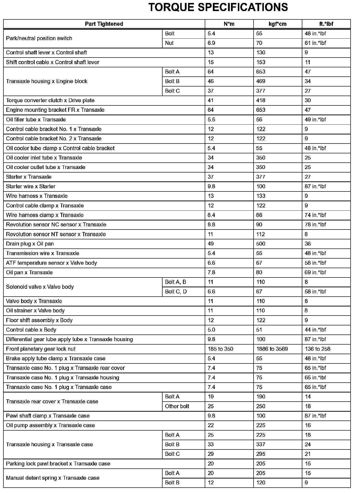 Automatic Transaxle - Torque Specifications (Part 1):