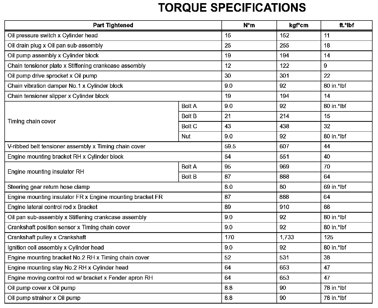 Lubrication - Torque Specifications: