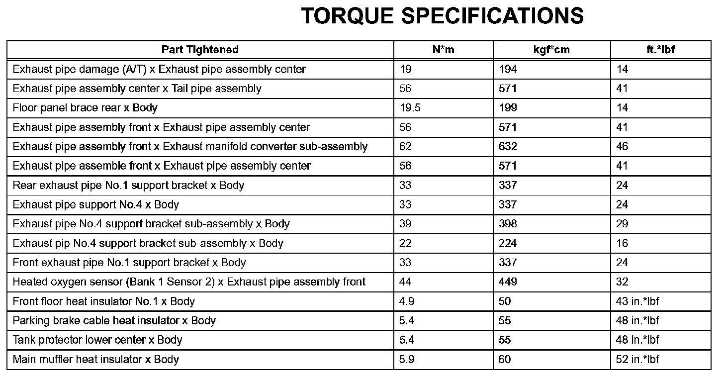 Exhaust - Torque Specifications: