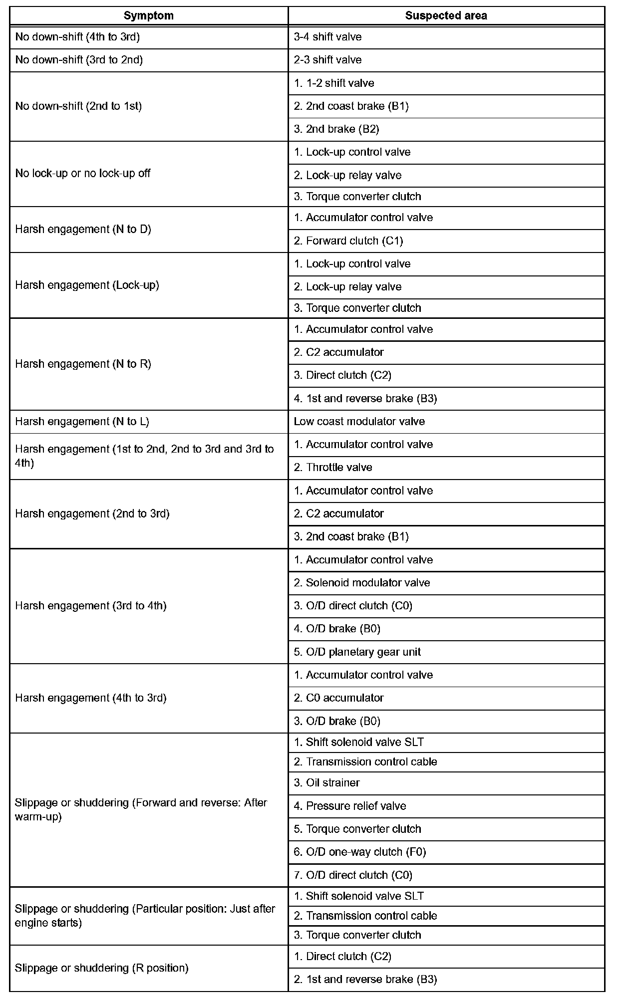 ^ If a normal code is displayed during the DTC check although the trouble still occurs, check the electrical circuits for each symptom in the order given in the charts and proceed for troubleshooting.