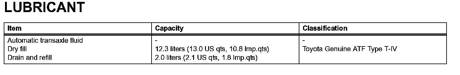 Automatic Transmission - Lubricant: