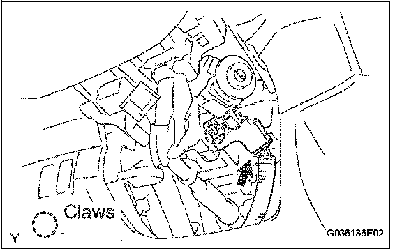 b. Disengage the 2 claws and remove the steering column cover LWR.