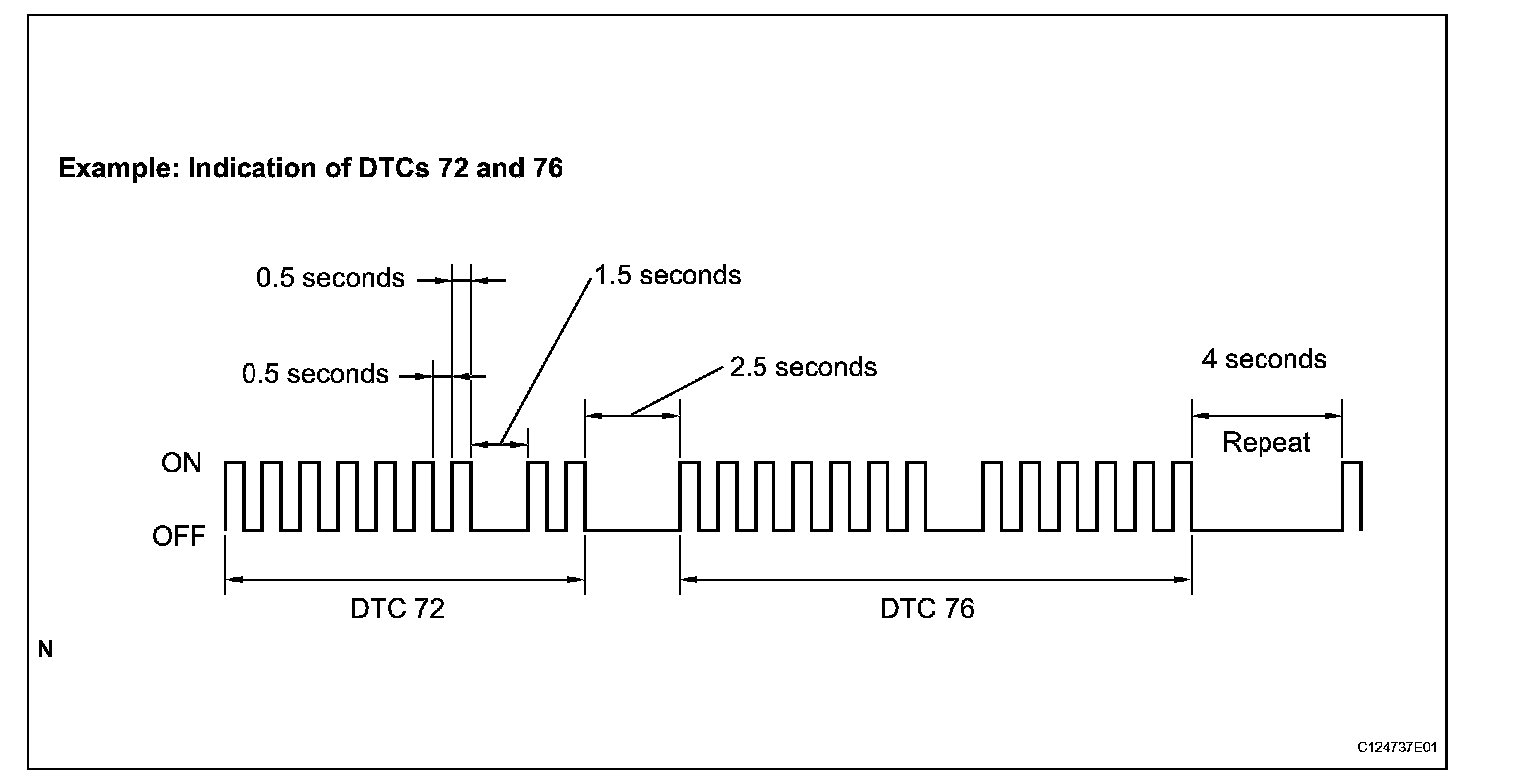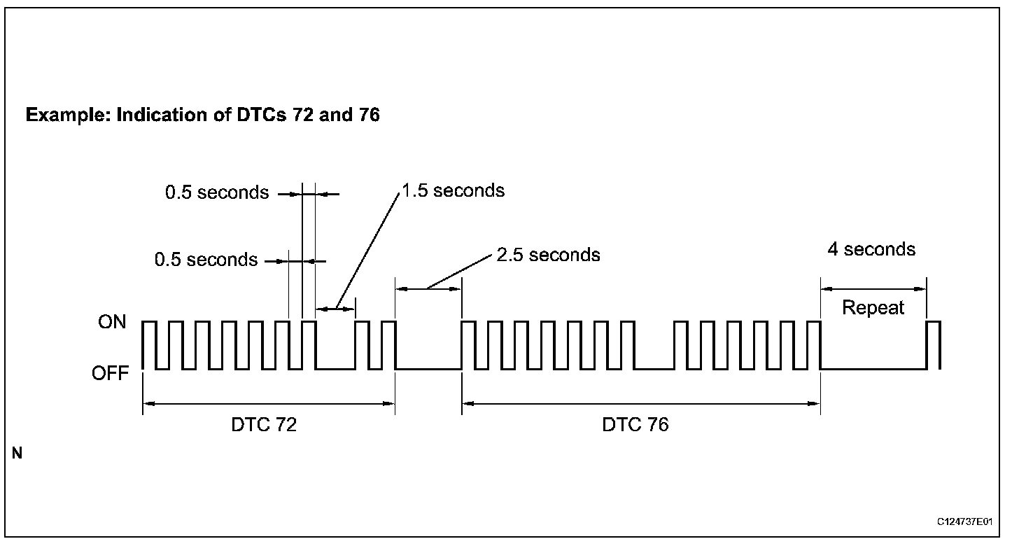 - If every sensor is normal, the normal code is displayed (A cycle of 0.25 seconds ON and 0.25 seconds OFF is repeated).