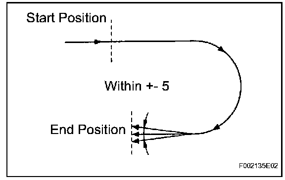 - Drive the vehicle in a 180° semi circle. At the end of the turn, the direction of the vehicle should be within 180 ±5° of its start position.