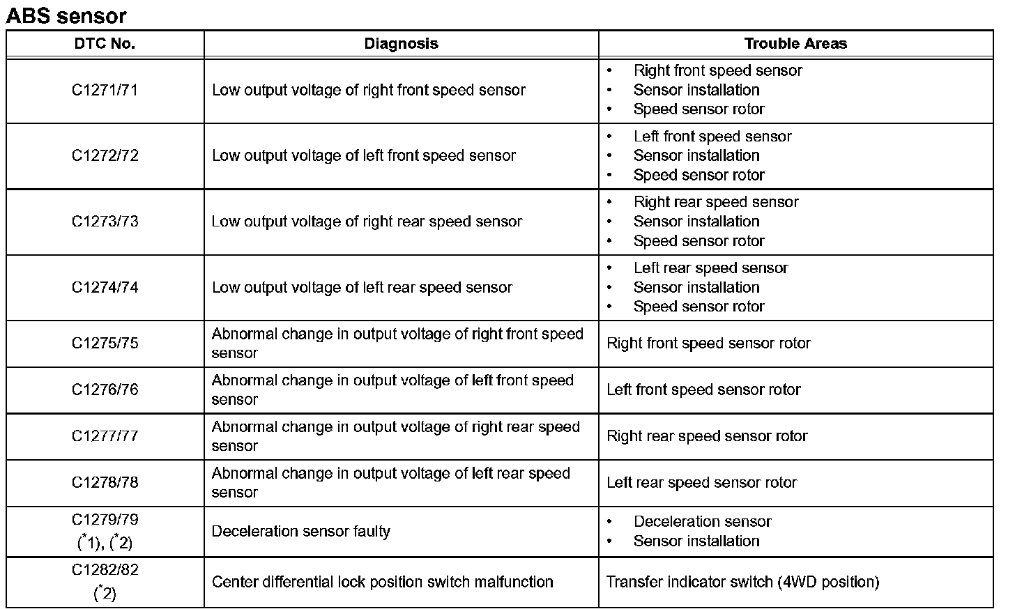 - The speed sensor signal check may not be completed if the speed sensor signal check is started while turning the steering wheel or spinning the wheels.