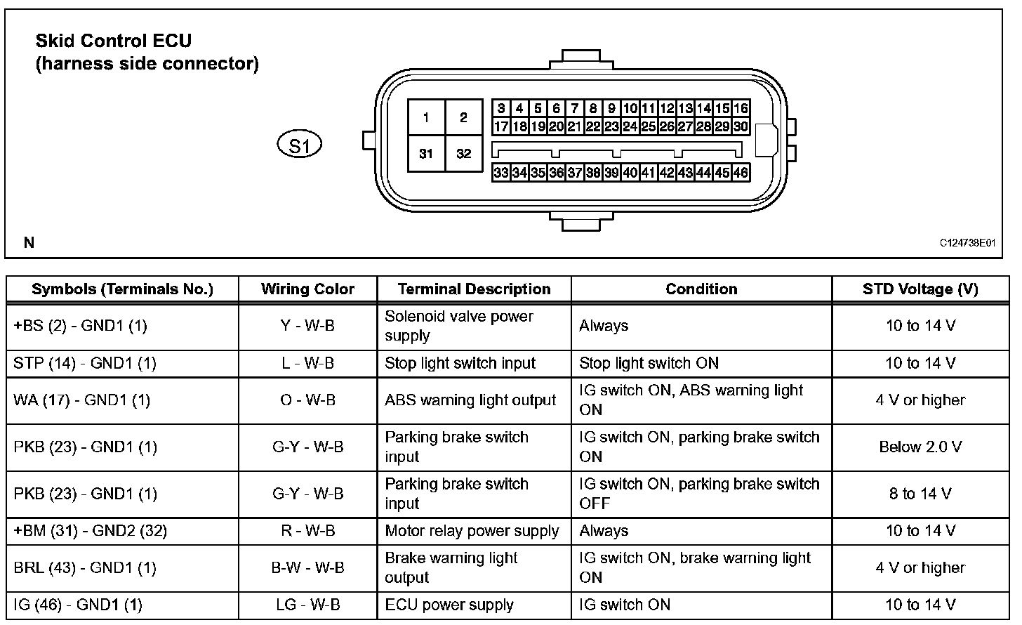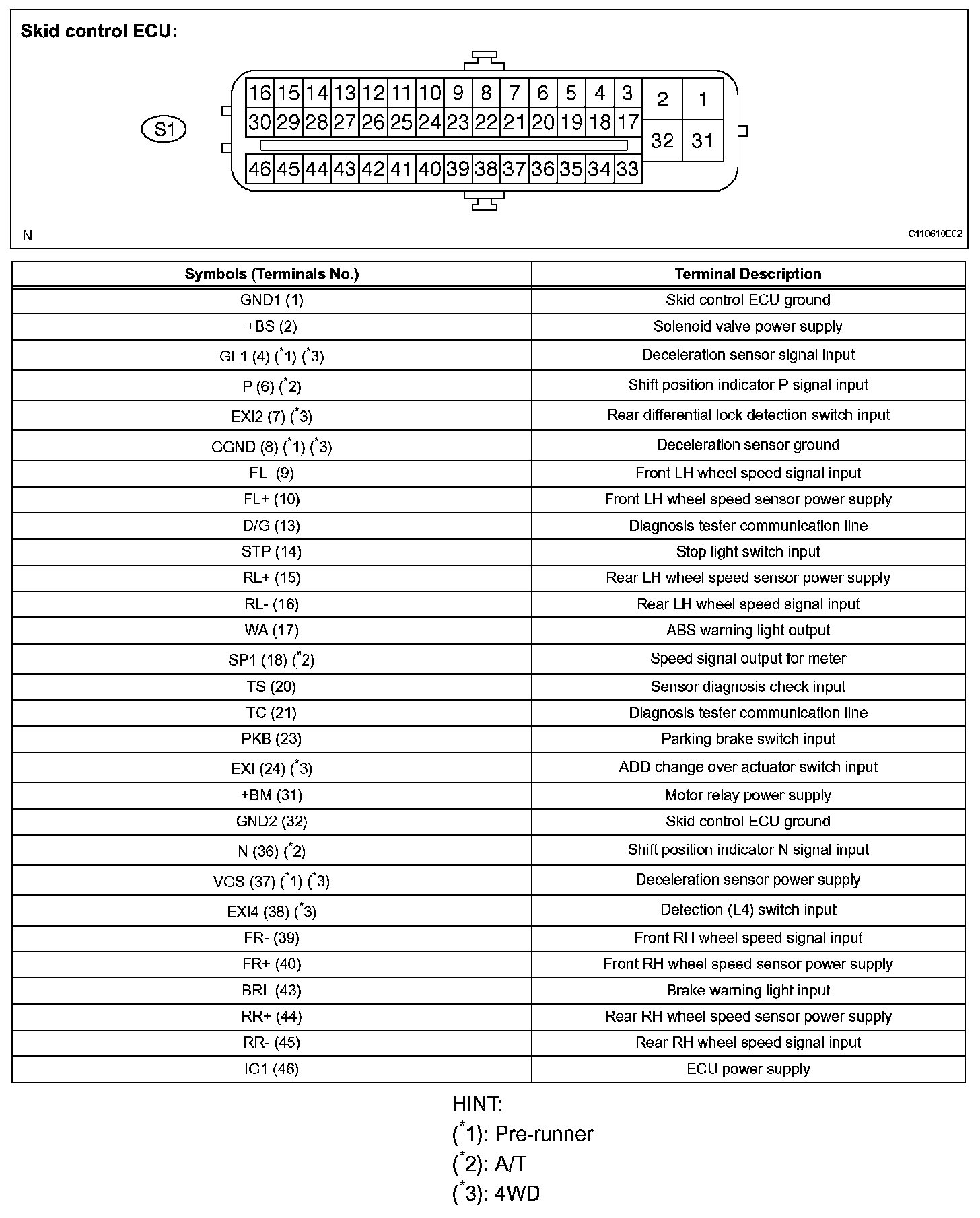 Terminals Of Control Module/Pinouts-Skid Control ECU (Part 1):