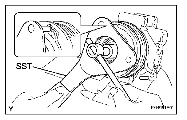 a. Using SST, hold the magnet clutch hub. SST 07112-76060