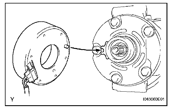a. Install the magnet clutch stator with the parts shown in the illustration matched.