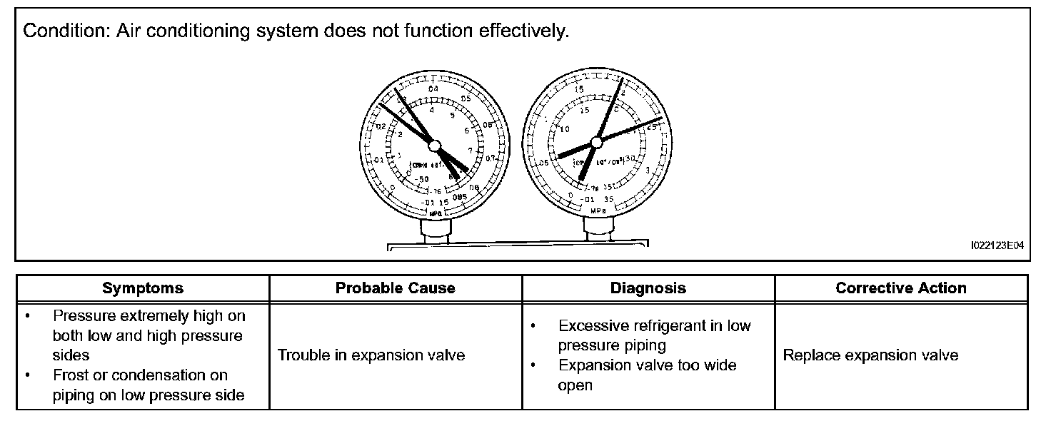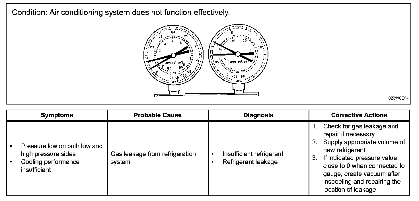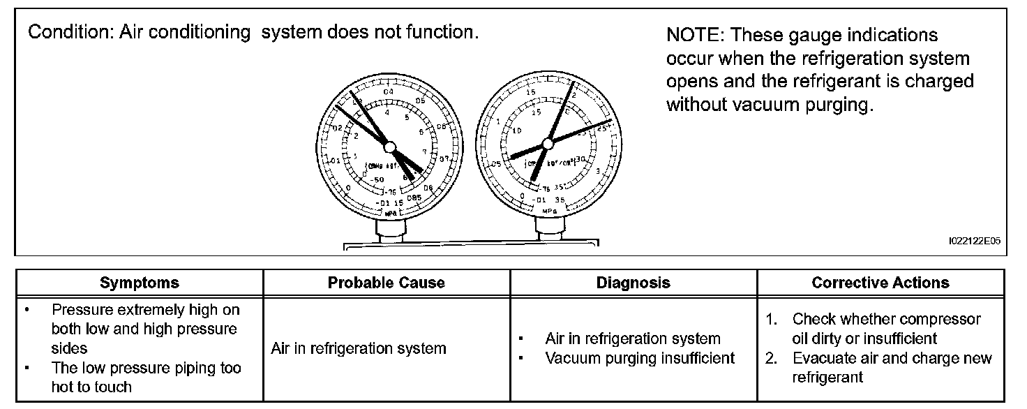 a. This is a method to specify trouble areas by using a manifold gauge set. Read the manifold gauge pressure when the following conditions are established.