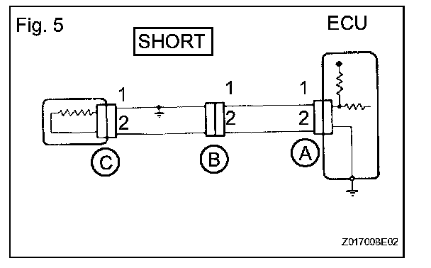 CHECK FOR SHORT CIRCUITa. If the wire harness is ground shorted (Fig. 5), locate the section by conducting a resistance check with the body ground.