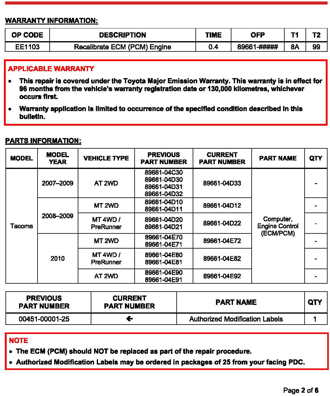 MEL "ON" DTC PO11B WITH BLOCK HEATER INSTALLED ON 2TR-FE ENGINE