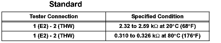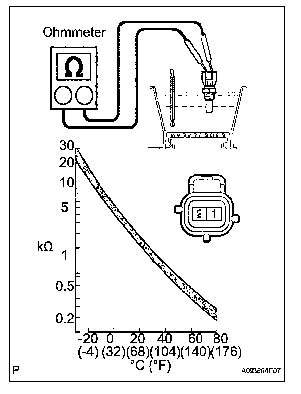 NOTE: If checking the engine coolant temperature sensor in water, be careful not to allow water to intrude into the terminals. After checking, wipe the water off the engine coolant temperature sensor.