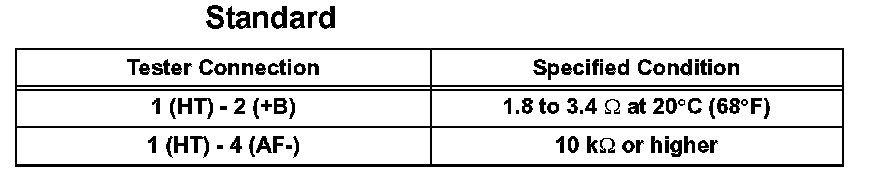 If the result is not as specified, replace the air fuel ratio sensor.