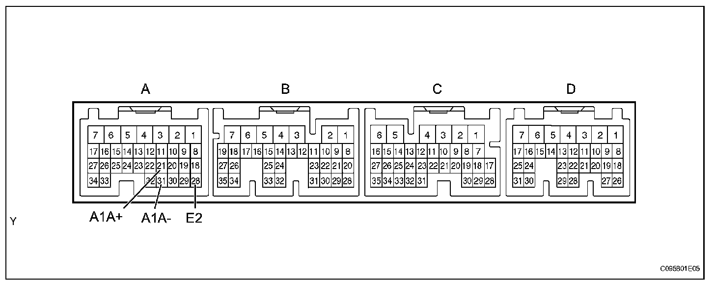 HINT: Voltage between the terminals of the ECM is kept constant regardless of the voltage of the A/F sensor.