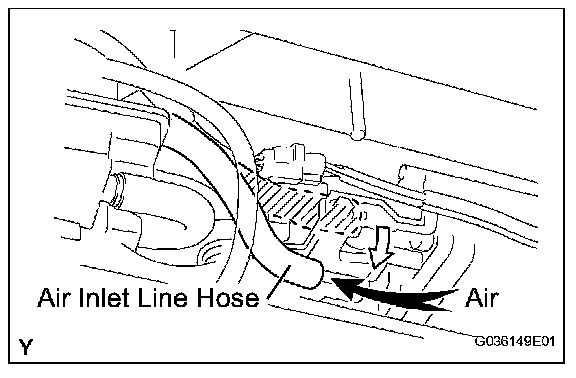 c. Reconnect the air inlet line hose to the charcoal canister.