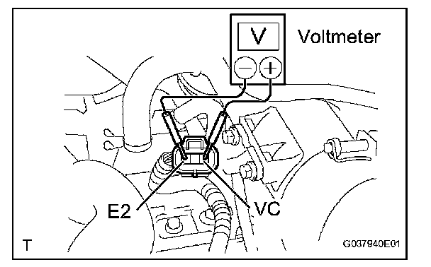 3. Using a voltmeter, measure the voltage between terminals VC and E2.