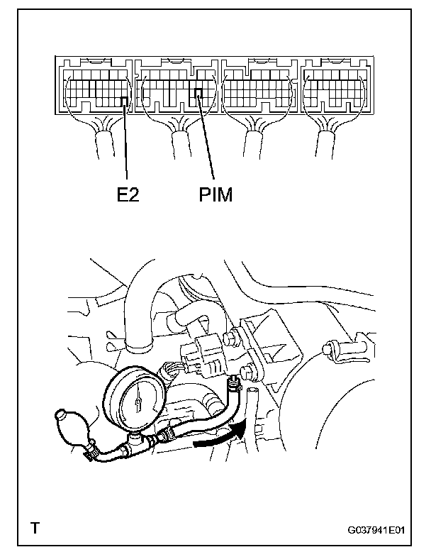 2. Connect a voltmeter to terminals PIM and E2 of the ECM and measure the output voltage under ambient atmospheric pressure.