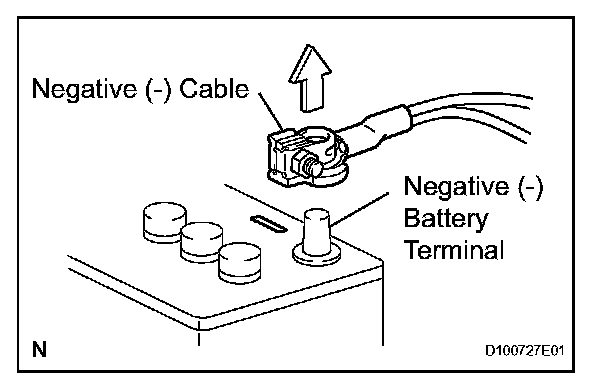 1. Before performing electronic work, disconnect the cable from the negative (-) battery terminal to prevent component and wire damage caused by accidental short circuits.