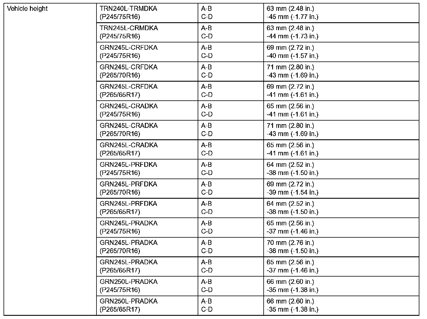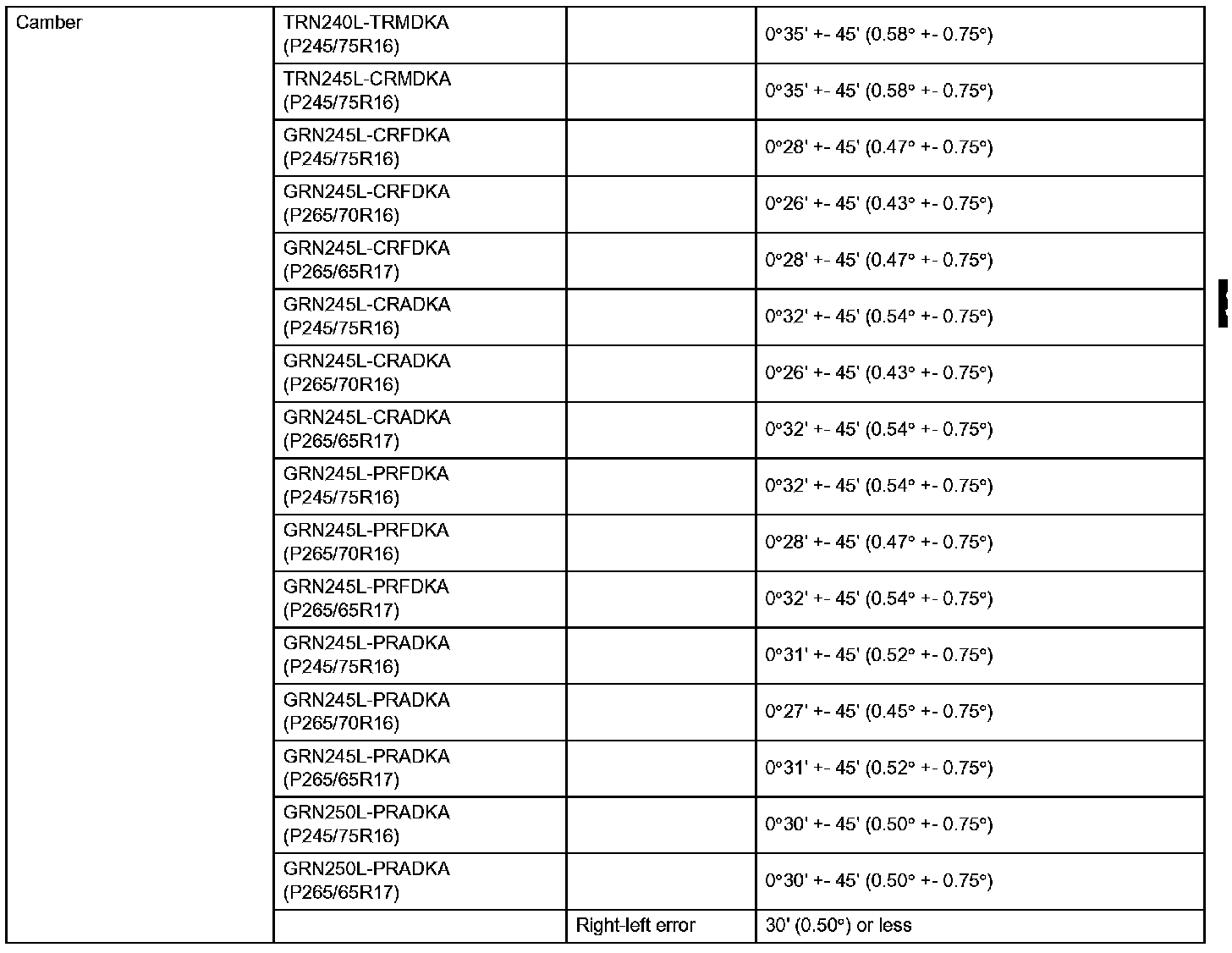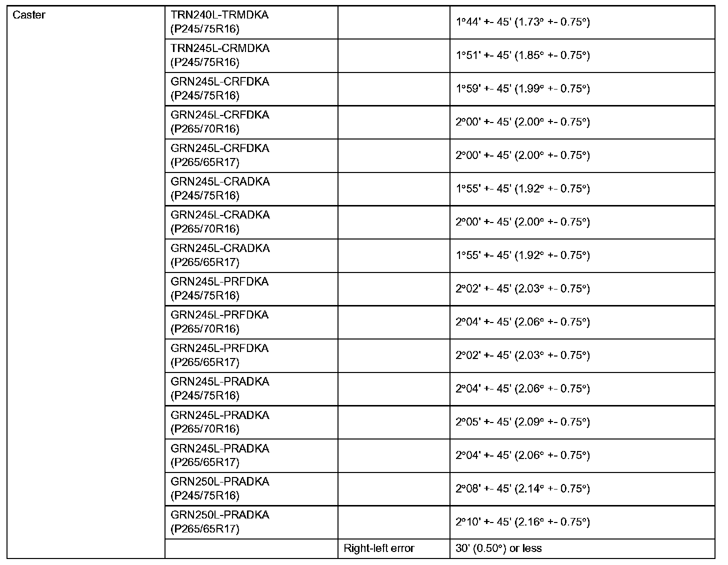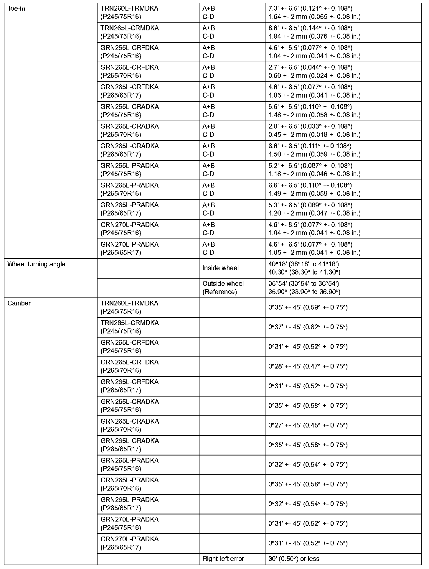 Front Suspension Service Data (PreRunner - North America):
