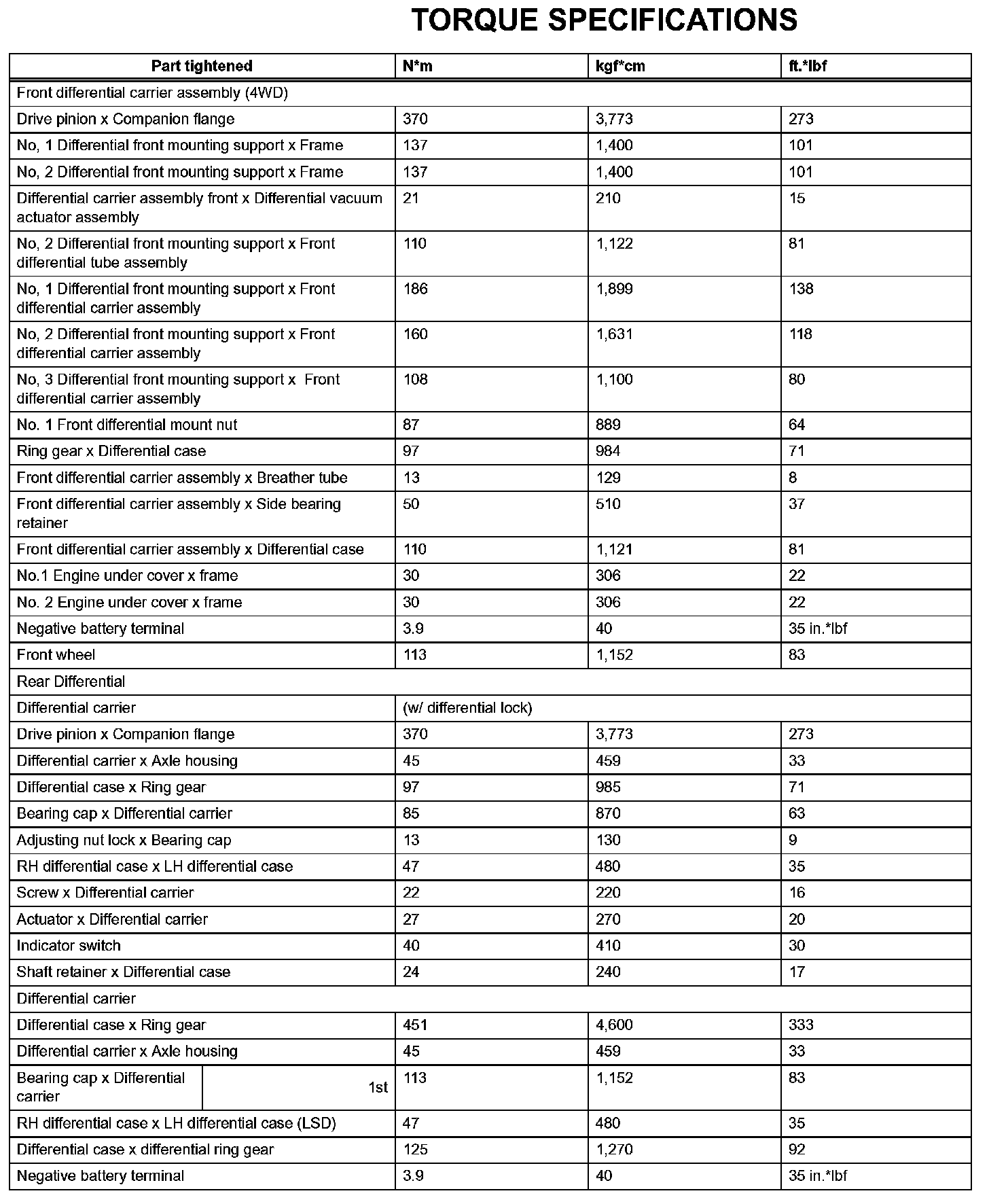 Differential - Torque Specifications: