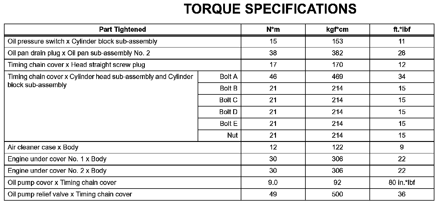 Lubrication - Torque Specifications: