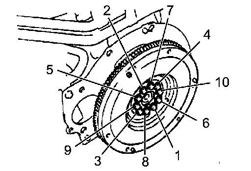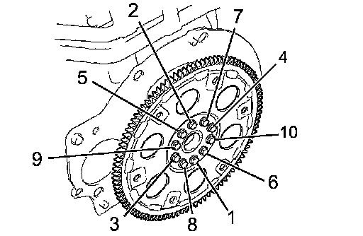 Using several steps, uniformly install and tighten the 10 bolts in the sequence shown in the illustration.