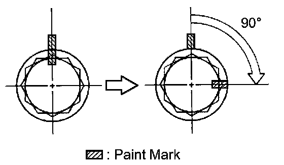 Check that the paint mark of each bolt is at a 90° from the original position.