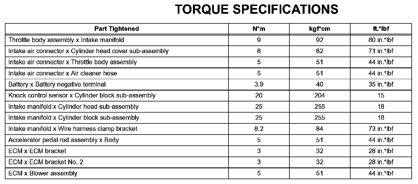 Engine Control System - Torque Specifications: