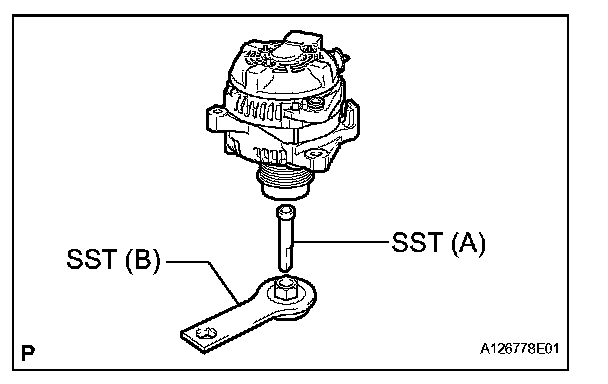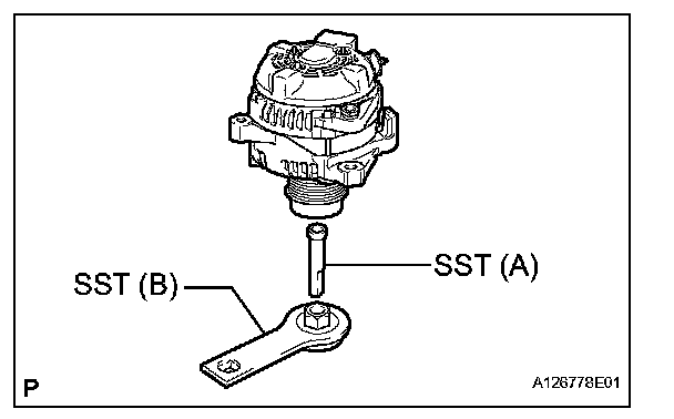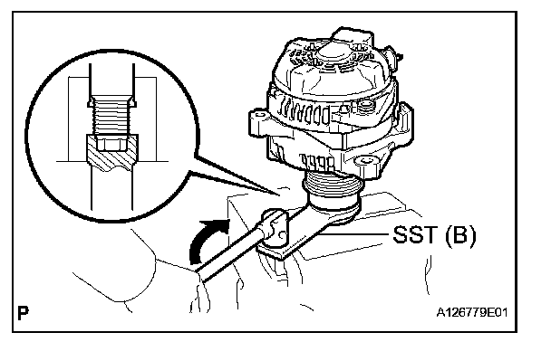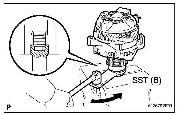 c. Turn SST (B) counterclockwise to tighten the pulley.