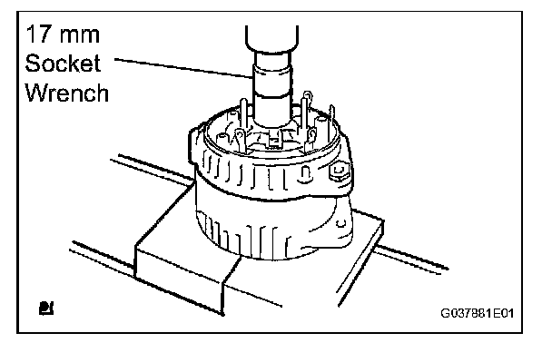 c. Using a 17 mm socket wrench and press, slowly press in the rectifier end frame.