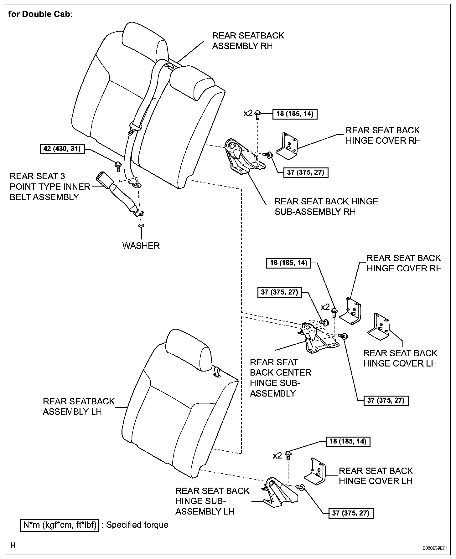 4. REMOVE REAR SEAT BACK HINGE SUB-ASSEMBLY LH (for Double Cab)