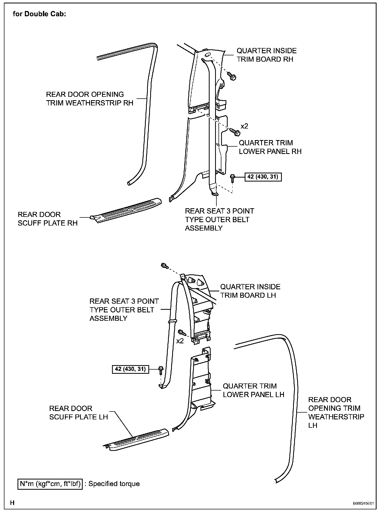 43. REMOVE QUARTER INSIDE TRIM BOARD LH (for Double Cab)
