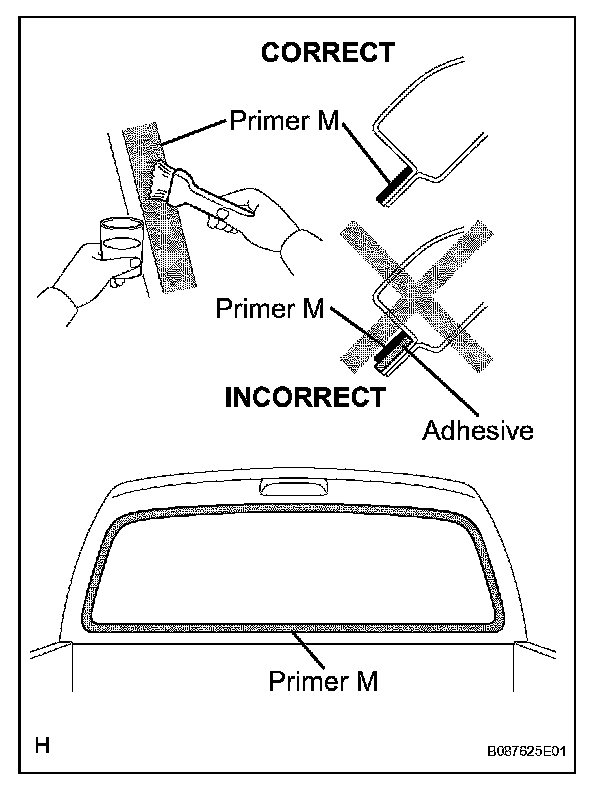 c. Using a brush or sponge, apply Primer G to the edge of the back window and contact surface.