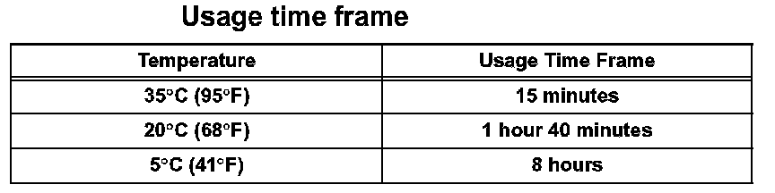 HINT: After cutting off the tip, use all adhesive within the time indicated in the table bellow.