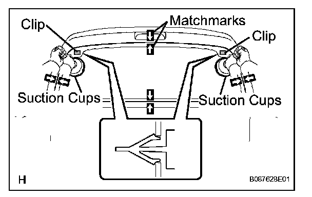 1. Using suction cups, position the back window so that the matchmarks are aligned. Press it in gently along the rim.