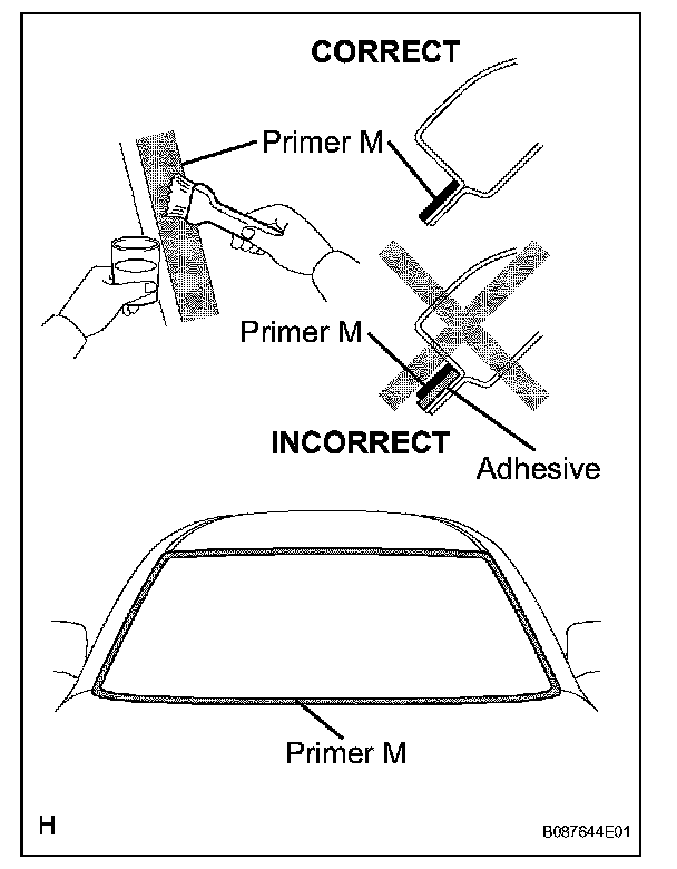 c. Using a brush or sponge, apply Primer G to the edge of the windshield glass and contact surface.