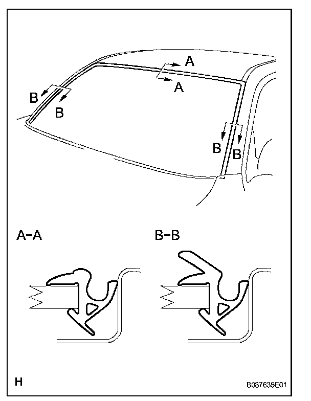 HINT: Follow the same procedures as for the front opening trim weatherstrip LH.