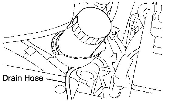 (g) Feed the drain hose down through the engine under cover, and put the drain oil container beneath the drain hose to catch the oil from the oil filter.