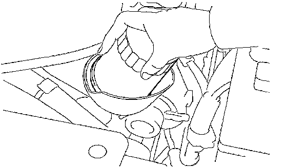 (c) Tighten the oil filter by hand until the rubber gasket comes into contact with the seat of the filter bracket.
