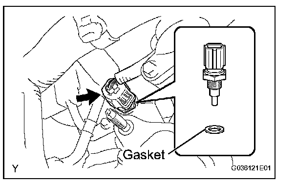 a. Using a 19 mm deep socket wrench, install the water temperature sensor with a new gasket.