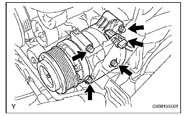 c. Remove the 4 bolts, then separate the cooler compressor assembly from the V-ribbed belt tensioner assembly.