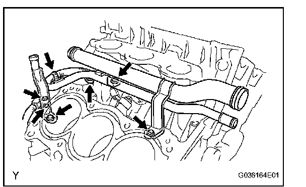 b. Remove the 3 bolts and water outlet pipe.