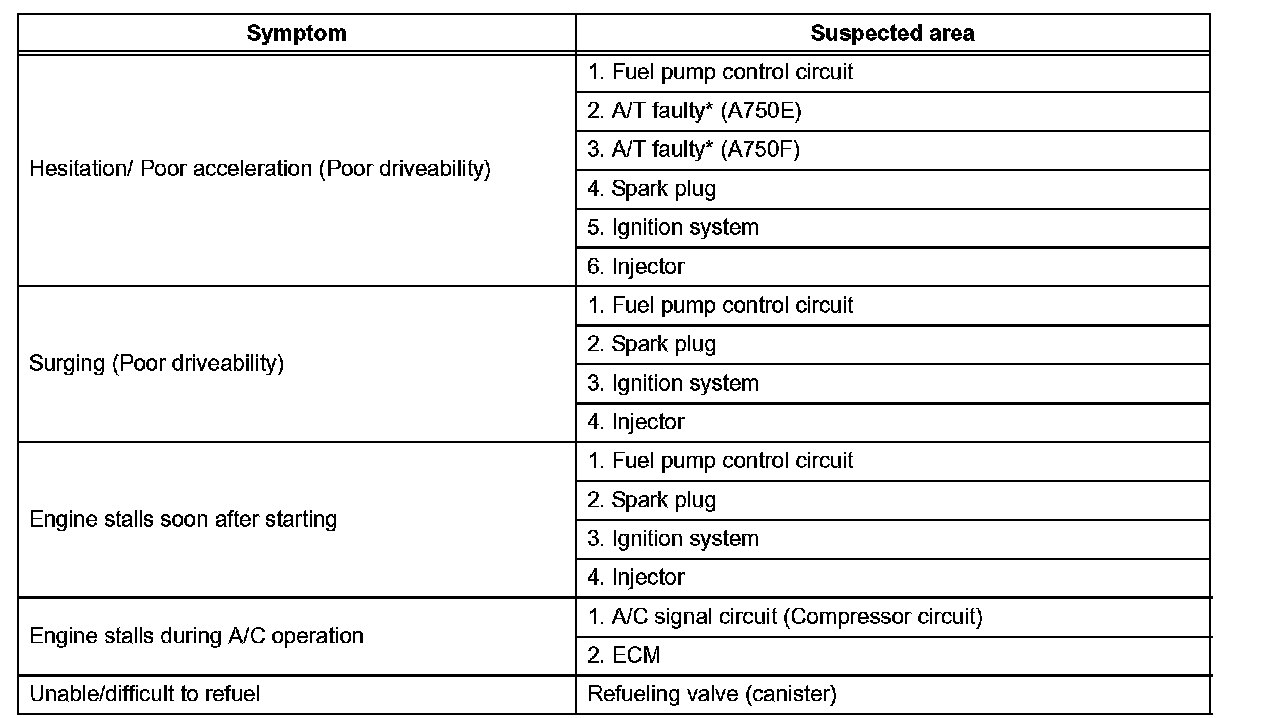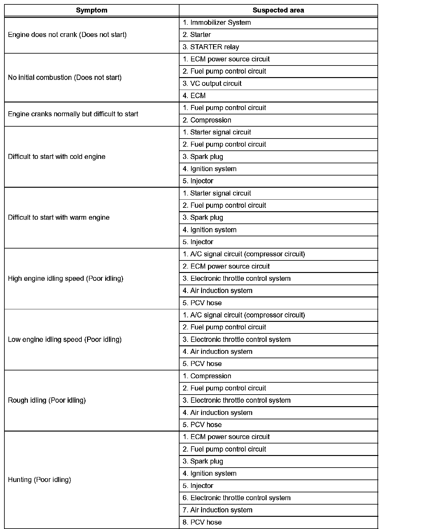 HINT: When a malfunction is not confirmed by a DTC (Diagnostic Trouble Code) check and the cause of problem cannot be identified through a basic inspection, troubleshoot according to the priority order indicated in the table.