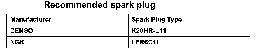 - The spark plug should be replaced every 200,000 km (120,000 miles).
