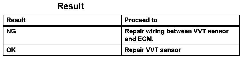 4. Check resistance in VVT sensor out put voltage (see step 2).